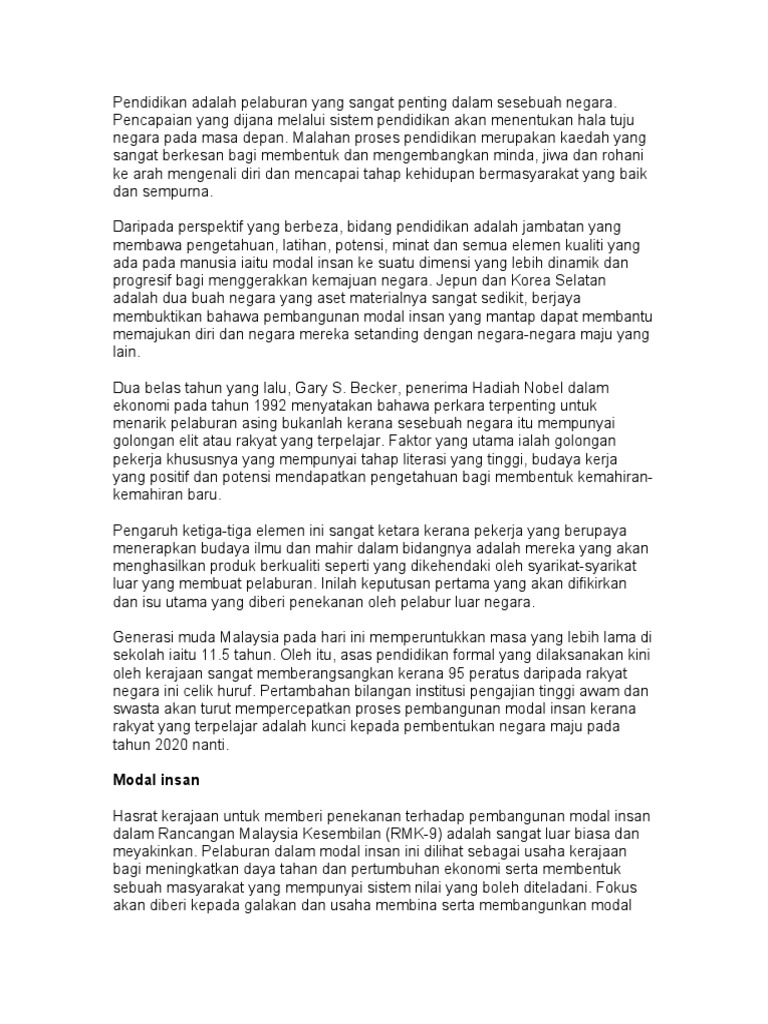 Pendidikan Adalah Pelaburan Yang Sangat Penting Dalam Sesebuah Negara Pdf